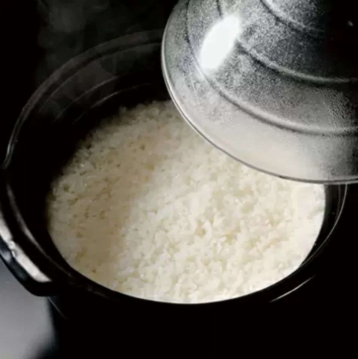 The glass lid of rice cooker allows you to see the flavours develop.